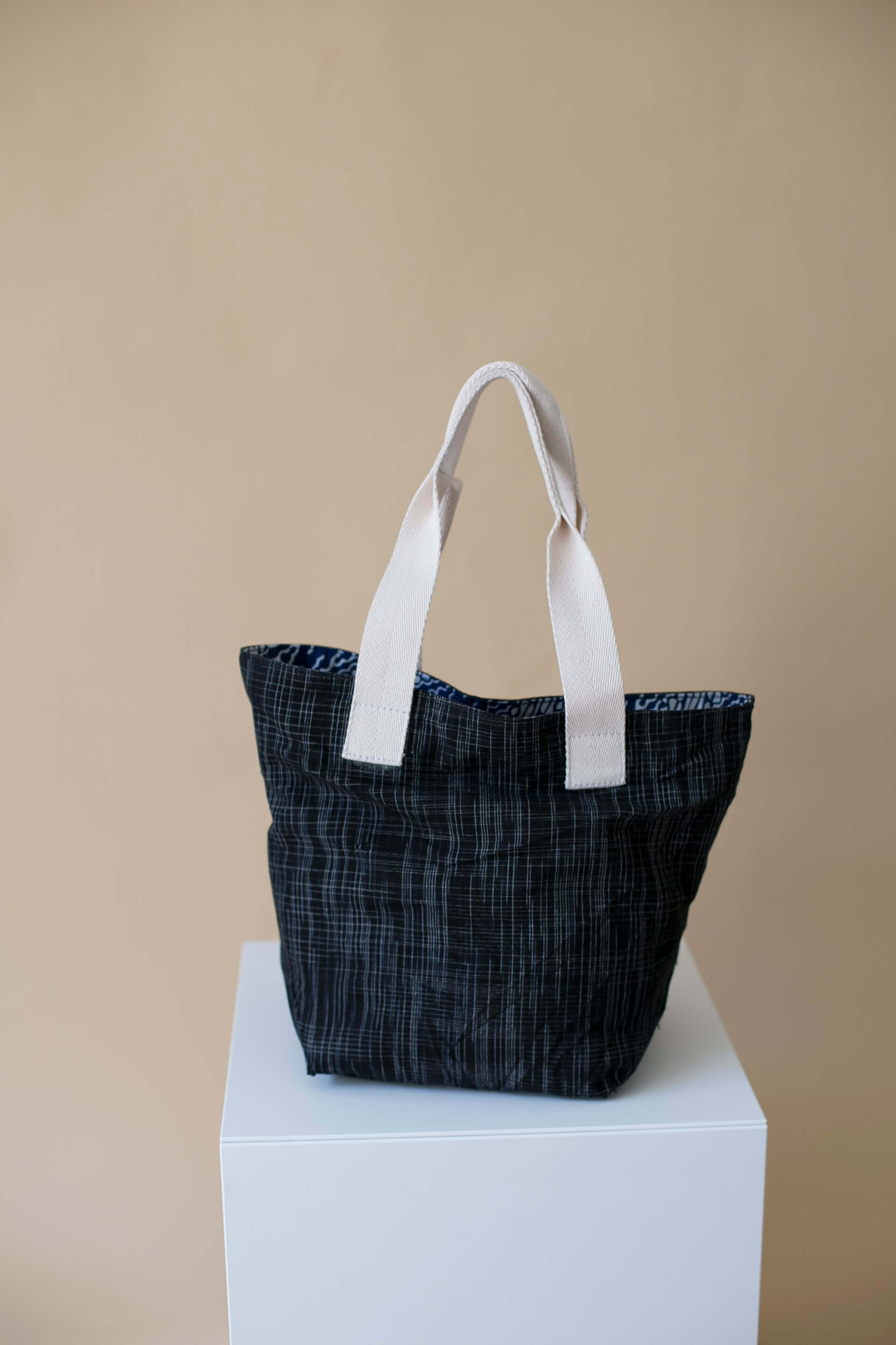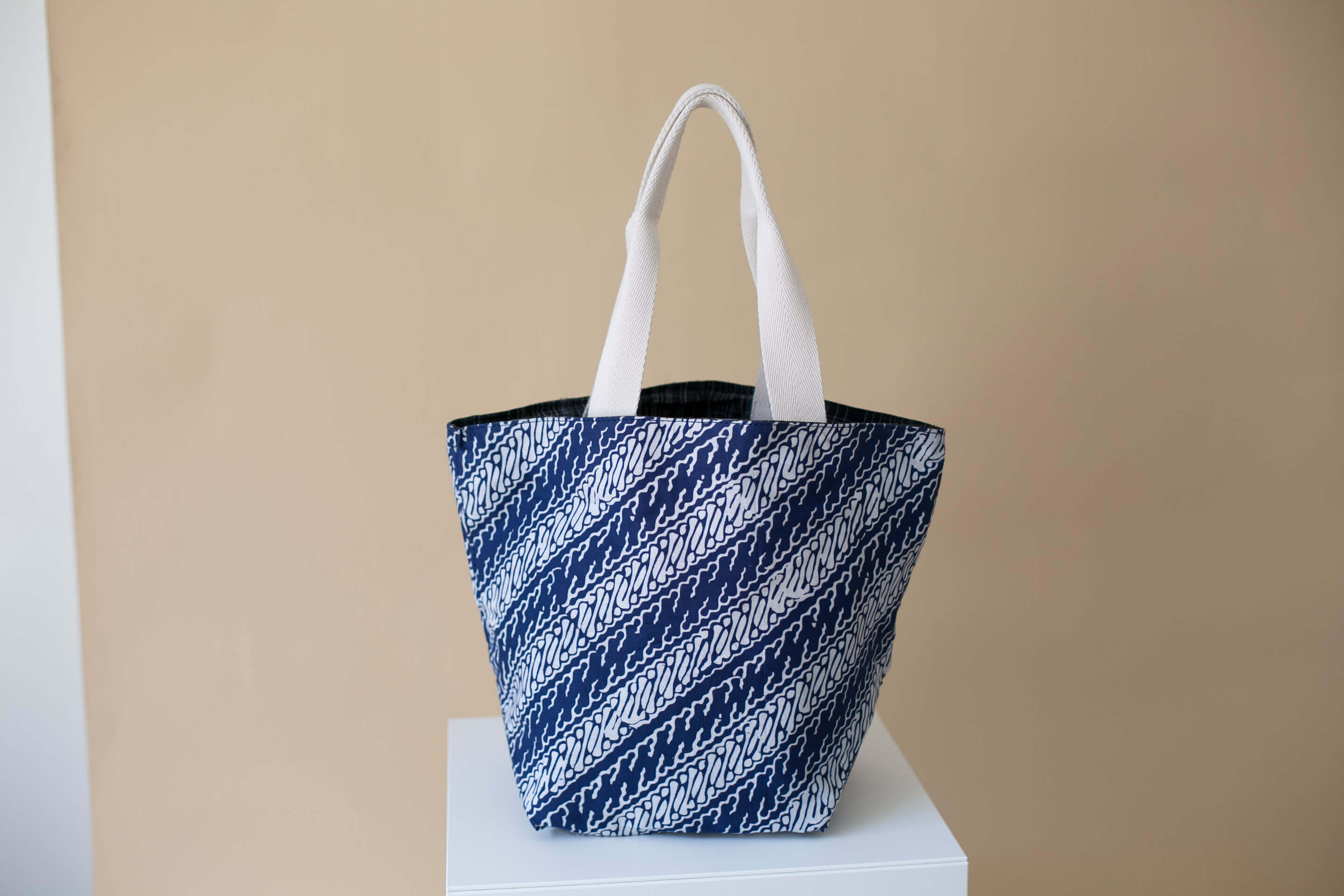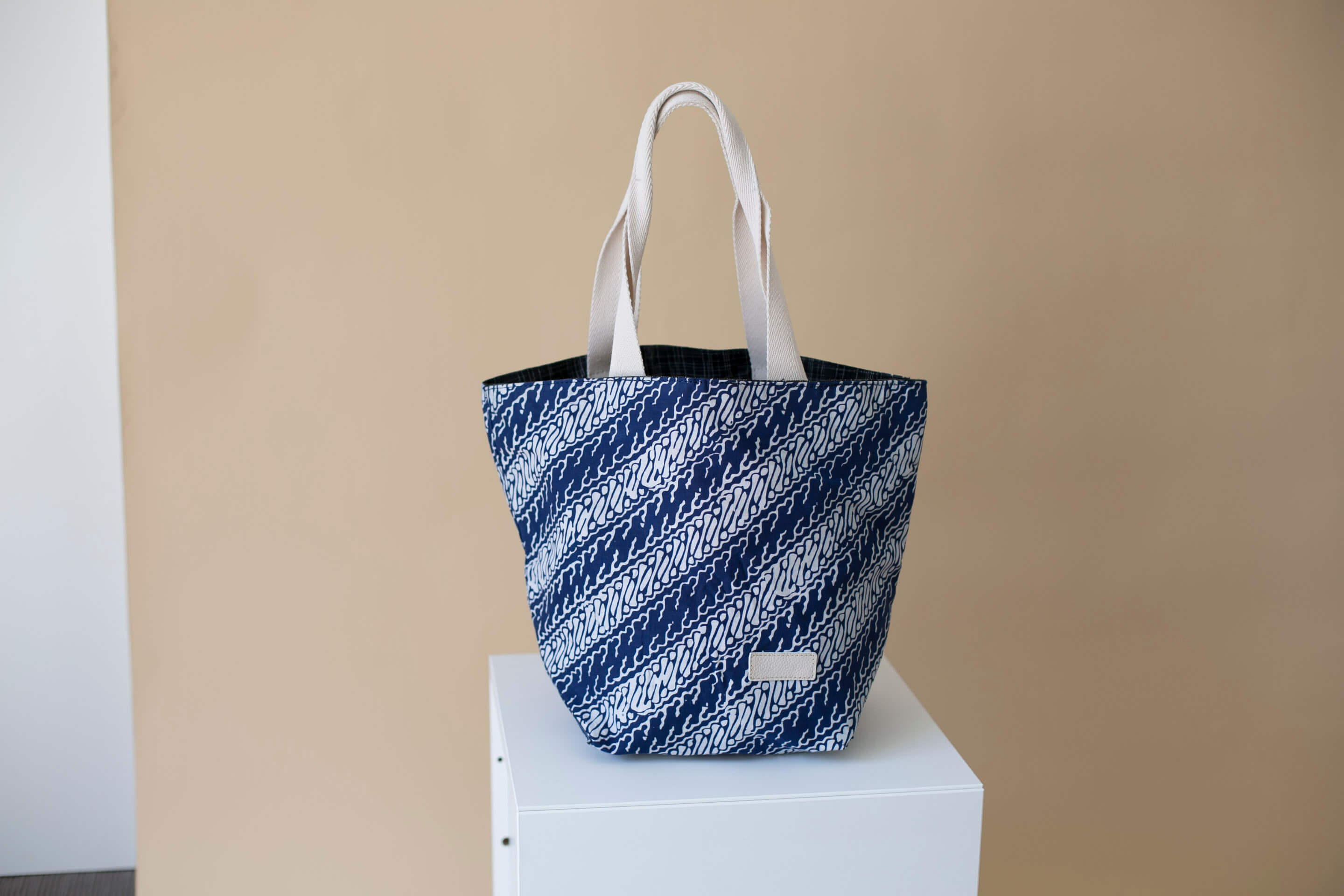 Made with meticulously hand-stamped Batik fabric and hand-woven Lurik (both are Indonesian heritage of textile), it's a reversible tote so it's practically 2 bags for one price!