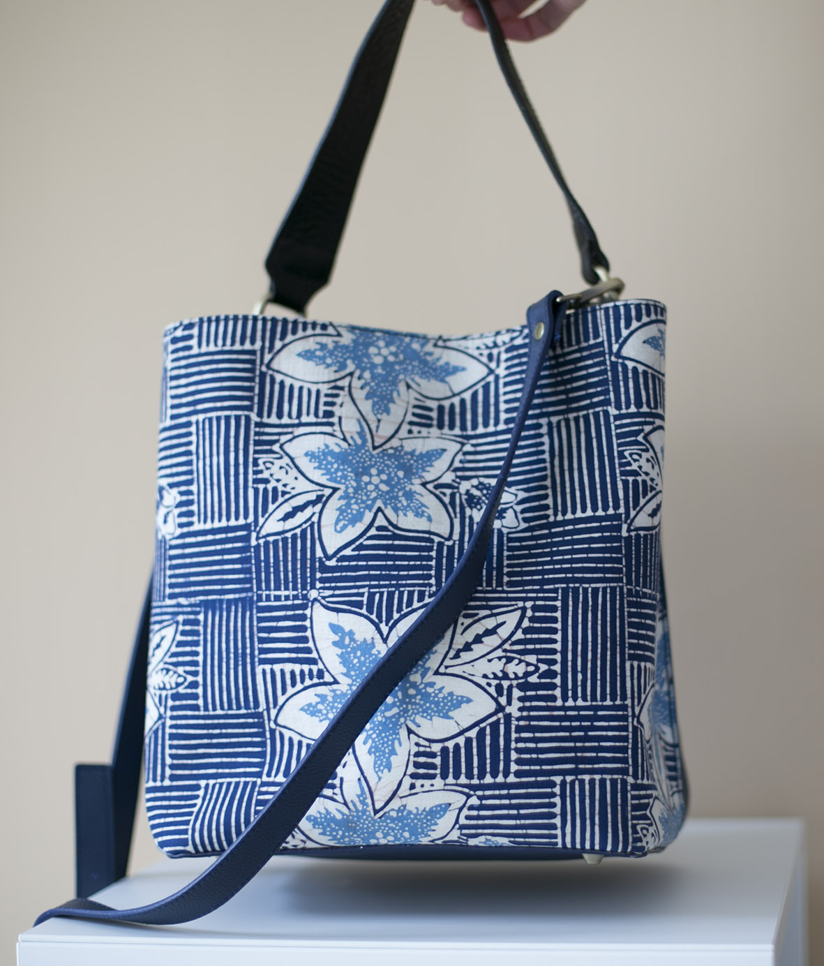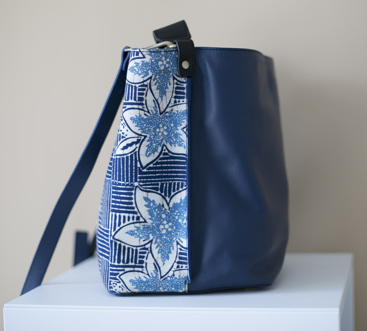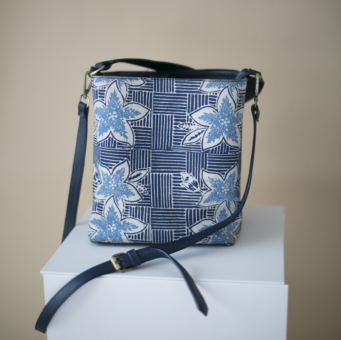 Say hello to your daily tote. This batik bag is made with hand stamped indigo wedelan batik by local artisan in Central Java, Indonesia and genuine leather.