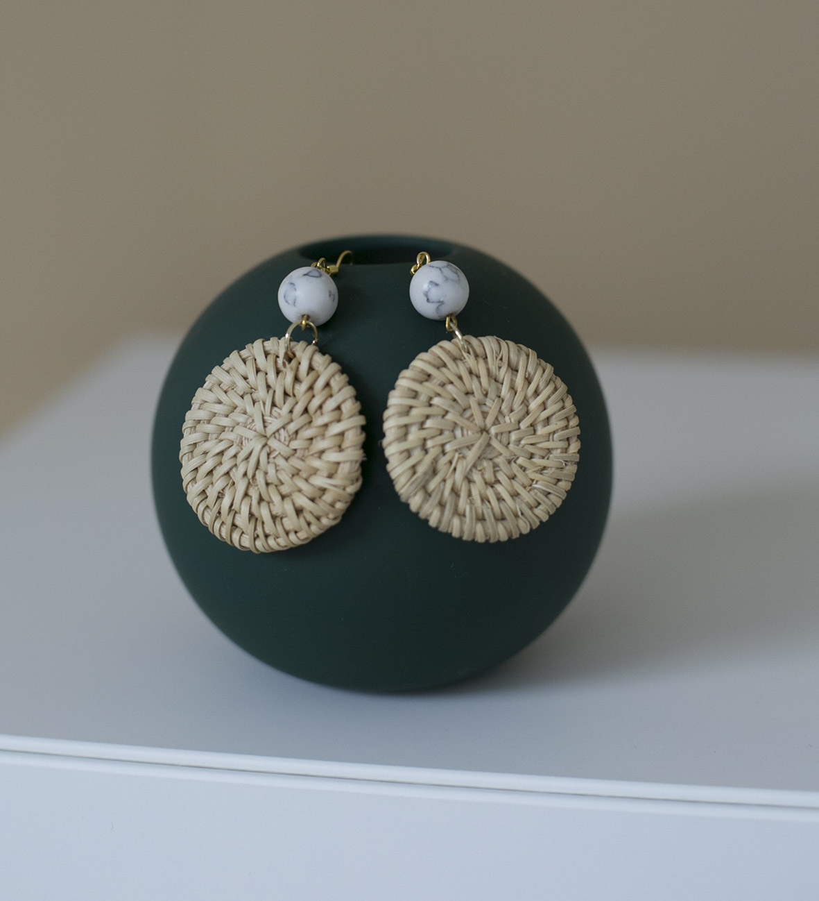 Marble Stone Rattan Earrings