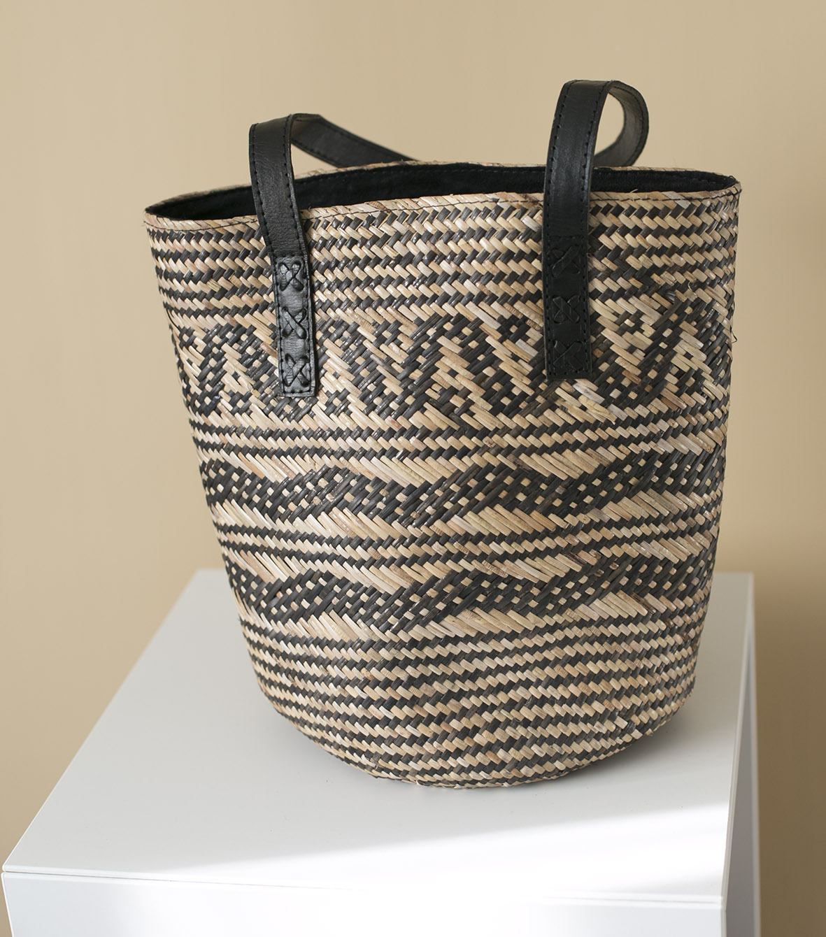 The bag is handmade in East Kalimantan, Indonesia, using natural materials and therefore no two design will be the same and each will have variations in colouring and size. Comes with genuine leather straps, magnetic closure and interior lining with zip pocket for your conveniences.