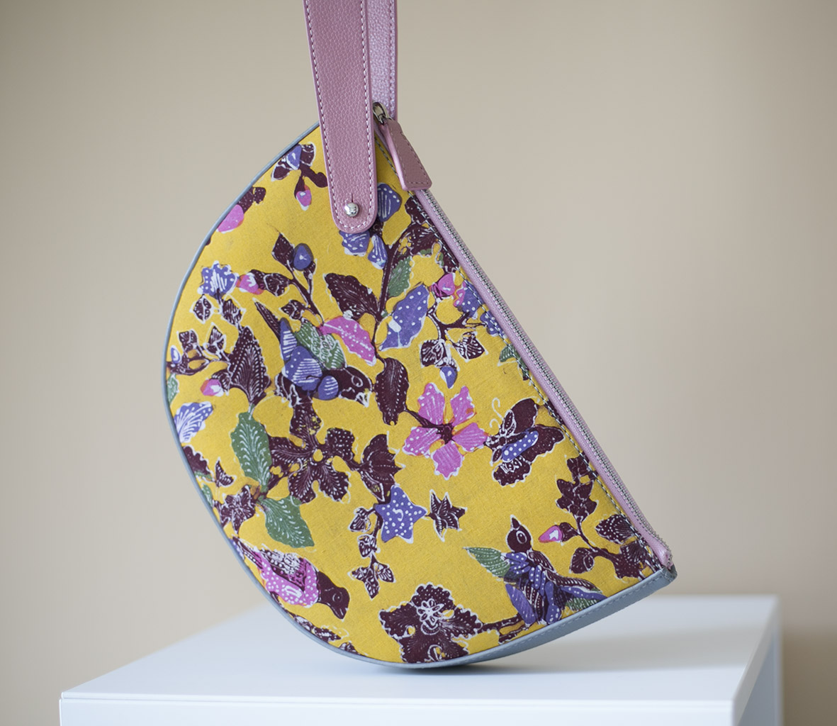 Hand painted batik bag by local artisan in Lasem, Central Java, Indonesia. The pattern with birds and flowers represents the long history of Javanese and Chinese culture and Lasem city is regarded as one of the most celebrated batik producer in Indonesia.