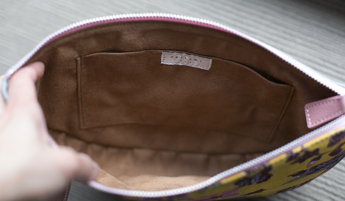 The clutch is also made with genuine grey leather with striking pink leather strap. Comes with zipped opening and internal pouch for your everyday go!